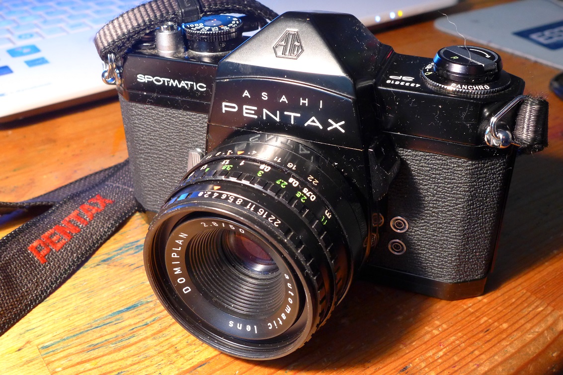 最近のフィルムカメラやレンズの暴落ぶりはものすごいものがあって、ペンタックスSPブラックを3000円、ドミプラン50mmF2.8を2000円で入手。